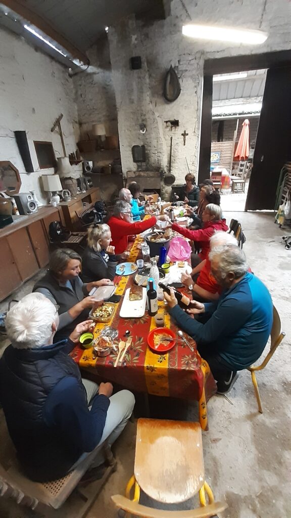 Ambiance sympathique au moment du Repas tiré du sac dans le presbytère